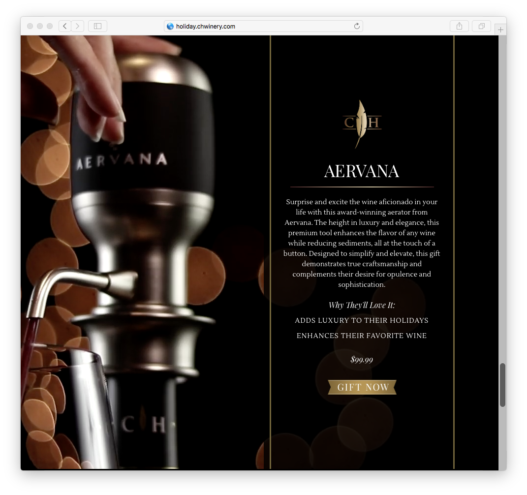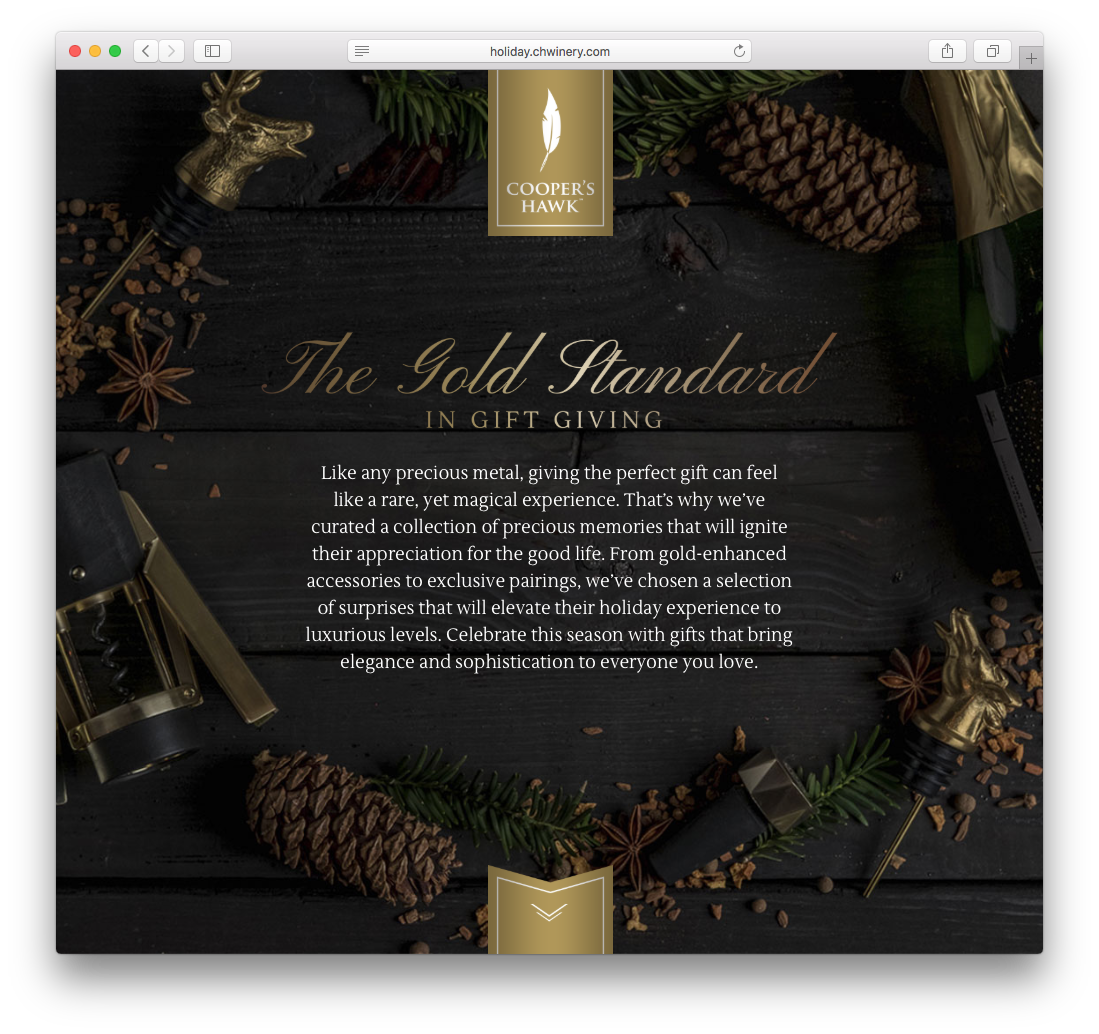 Focusing on the element of gold, I developed copy for the overarching holiday theme and product line that touts Cooper’s Hawk as the gold standard for gift giving.